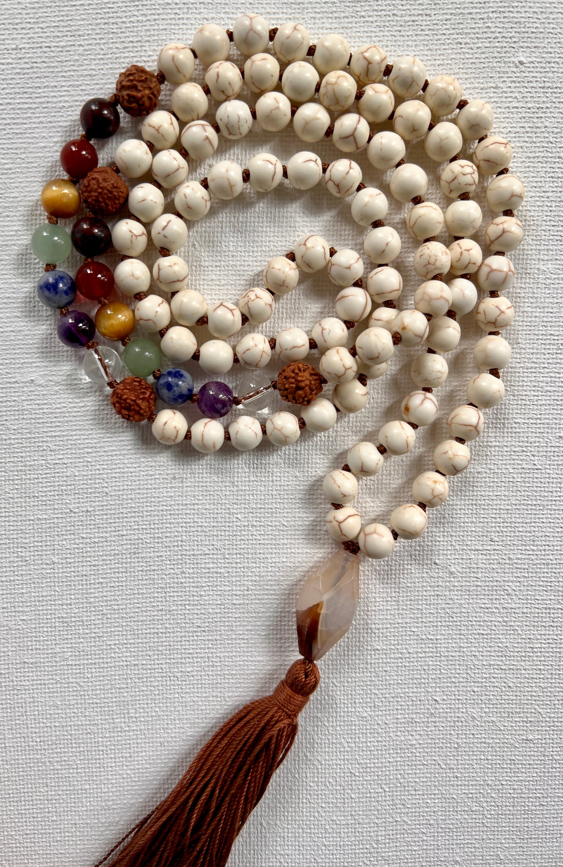 This handcrafted Chakra Mala is designed with Magnesite and Chakra stones, which maximize the potential healing benefits of chakra realignment. These gemstones are believed to bring balance to the body, mind, and spirit, making it a perfect choice for yoga practitioners, healers, and spiritual seekers.