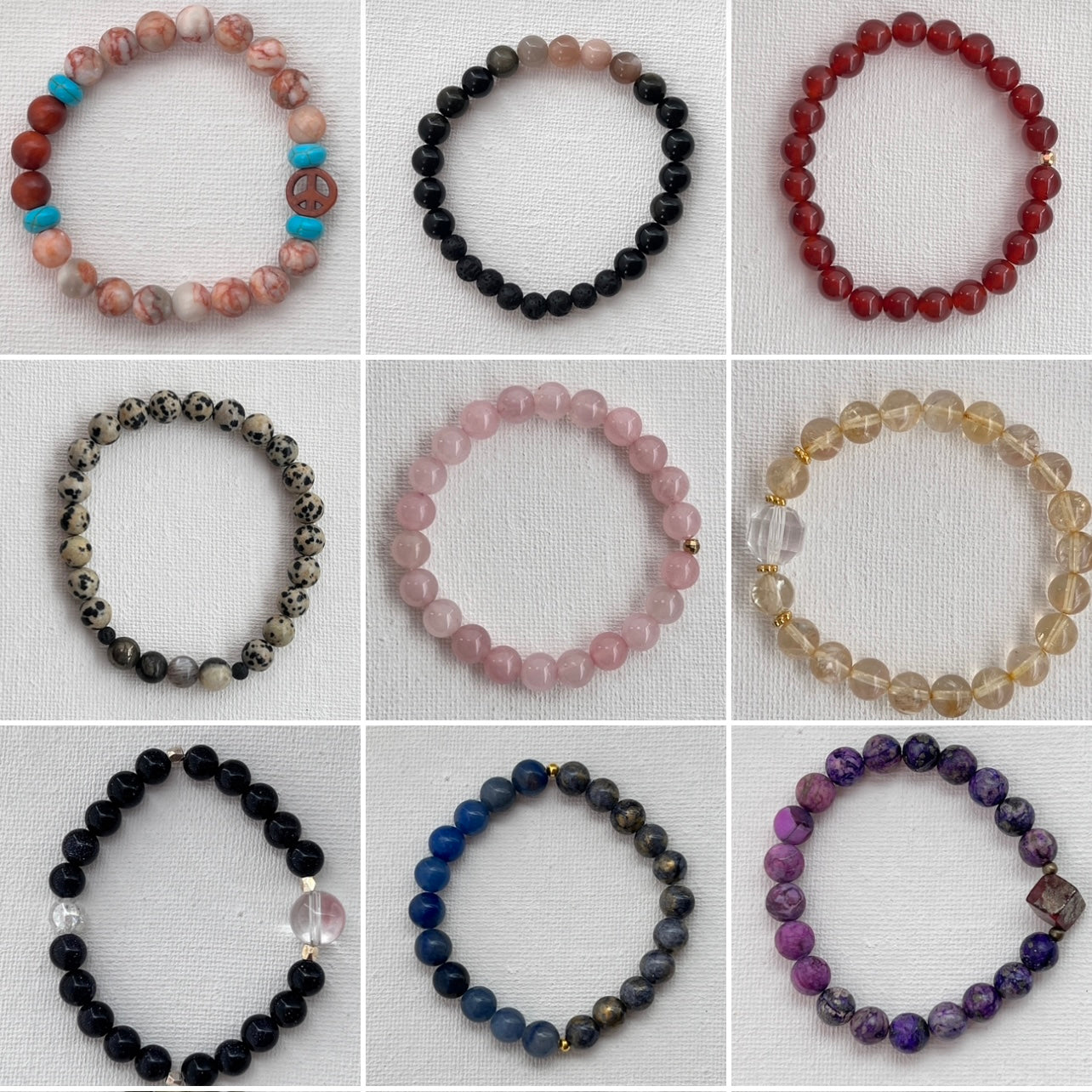 Our gemstone bracelets are carefully crafted with the highest intention and healing combination possible. We specialize in stretch bracelets and offer a variety of sizes. Plus custom sizing if needed. We traditionally use beads from 4-10 mm, most being 8mm.