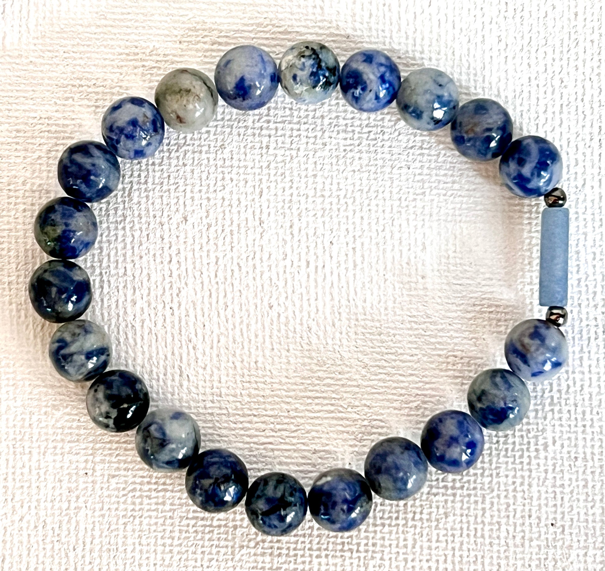Sodalite brings calm and order to the mind. It encourages rational thought and objectivity. Great for dealing with anxiety provoking situations and decisions.