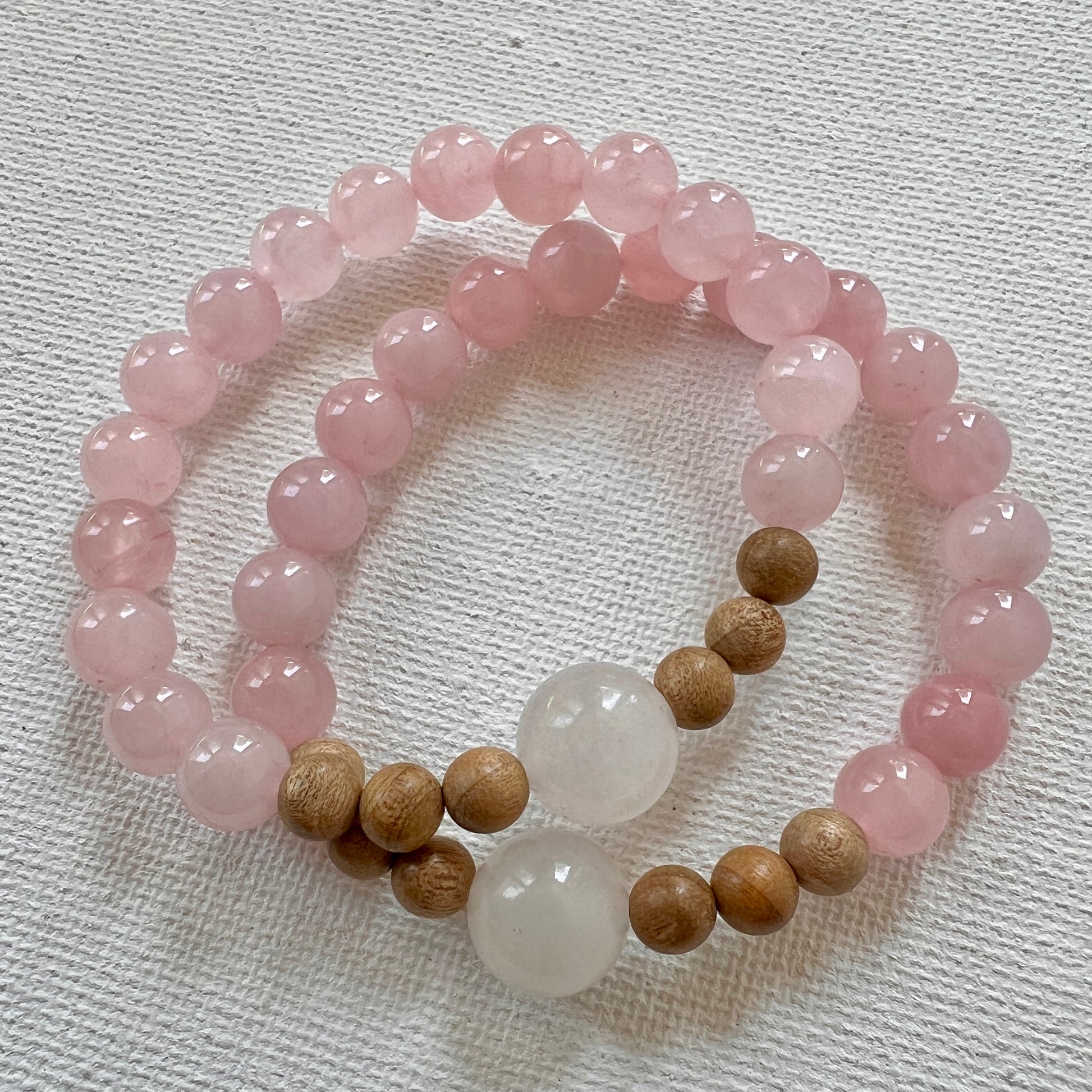 This 'Rose Quartz Strong Love' bracelet is a powerful reminder of self love. Crafted from rose quartz and wood, the bracelet radiates strength, softness, and the power of unconditional love. Let it be a daily reminder to love yourself and embrace your most powerful self.
